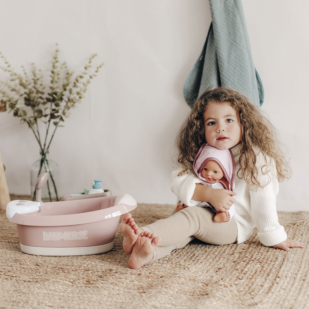 Cadita pentru papusa Smoby Baby Nurse Baleno Bath roz cu accesorii