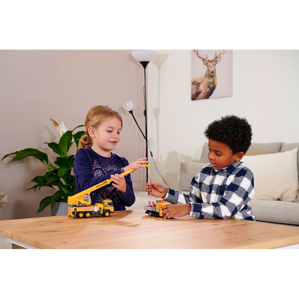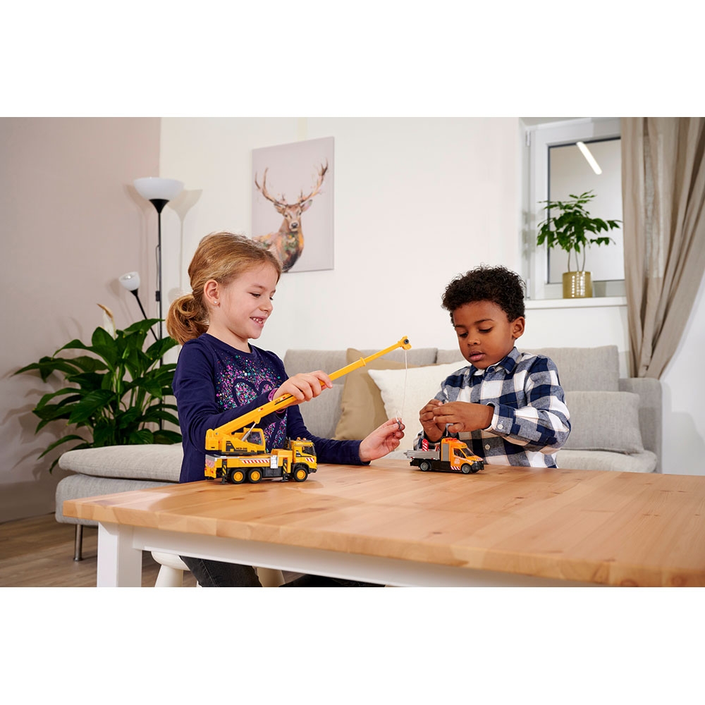 - Camionul galben isi transporta cu usurinta incarcatura dintr-un loc in altul folosind un troliu cu cablu si un carlig: bratul telescopic din 3 parti se extinde pana la 35 cm in lungime, in timp ce macaraua se misca la stanga si la dreapta