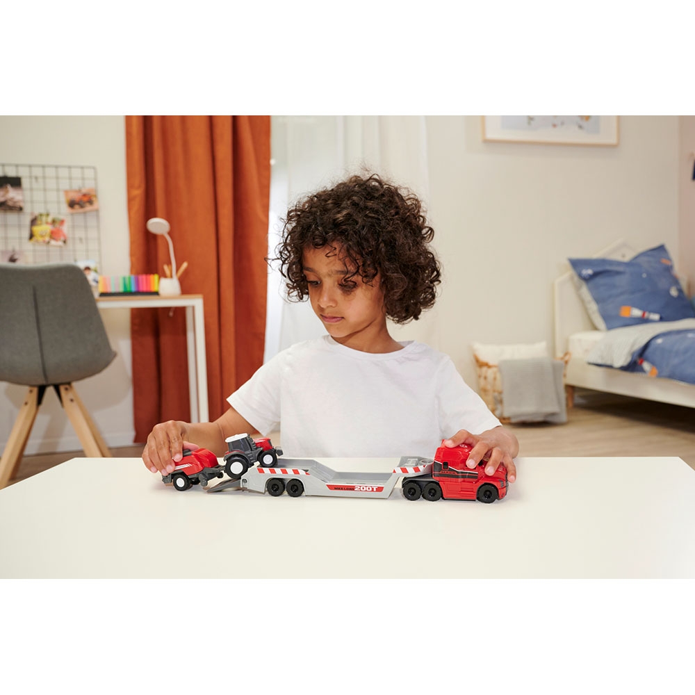 - Setul include 3 vehicule de jucarie (camion cu remorca, tractor si o presa de balotat)