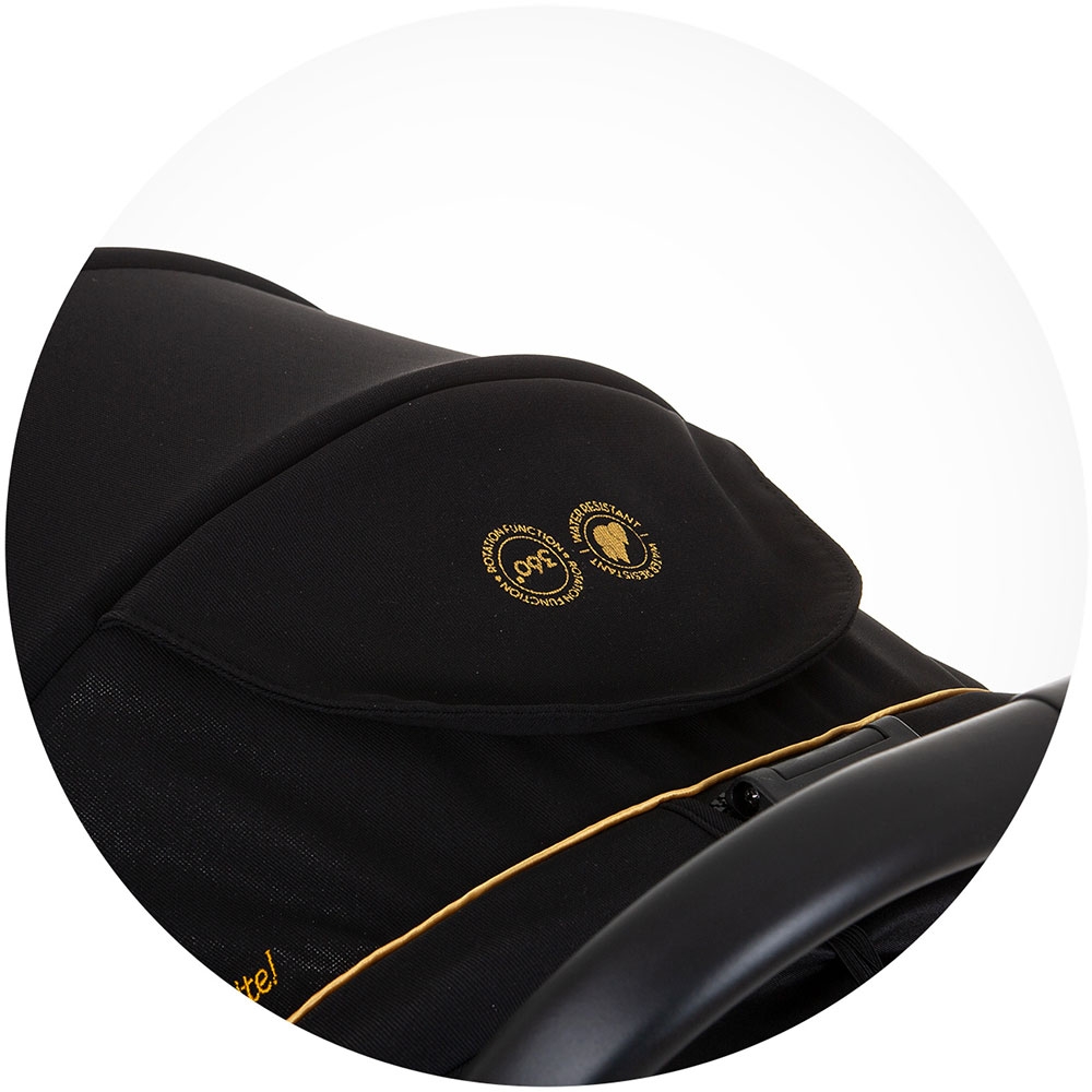 - Sezut rotativ, cu o rotatie de 360 grade, ofera confort pentru copii si parinti