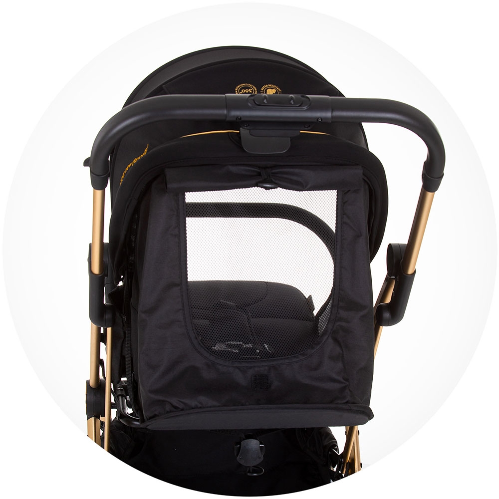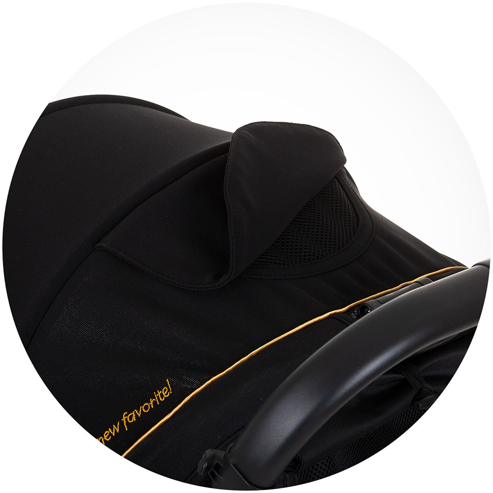 - Materialul de la copertina este impermeabil, dotata cu orificii de aerisire cu plasa