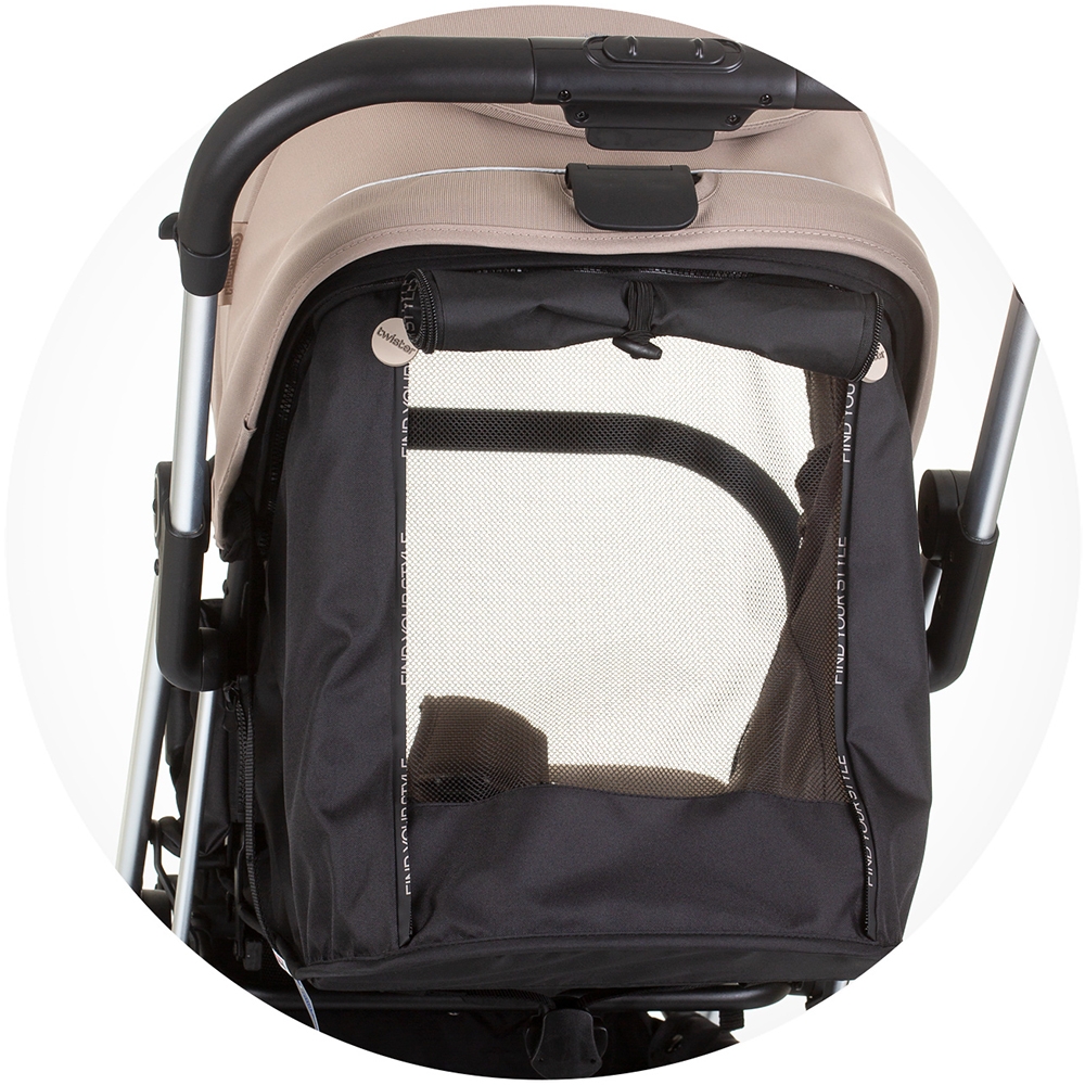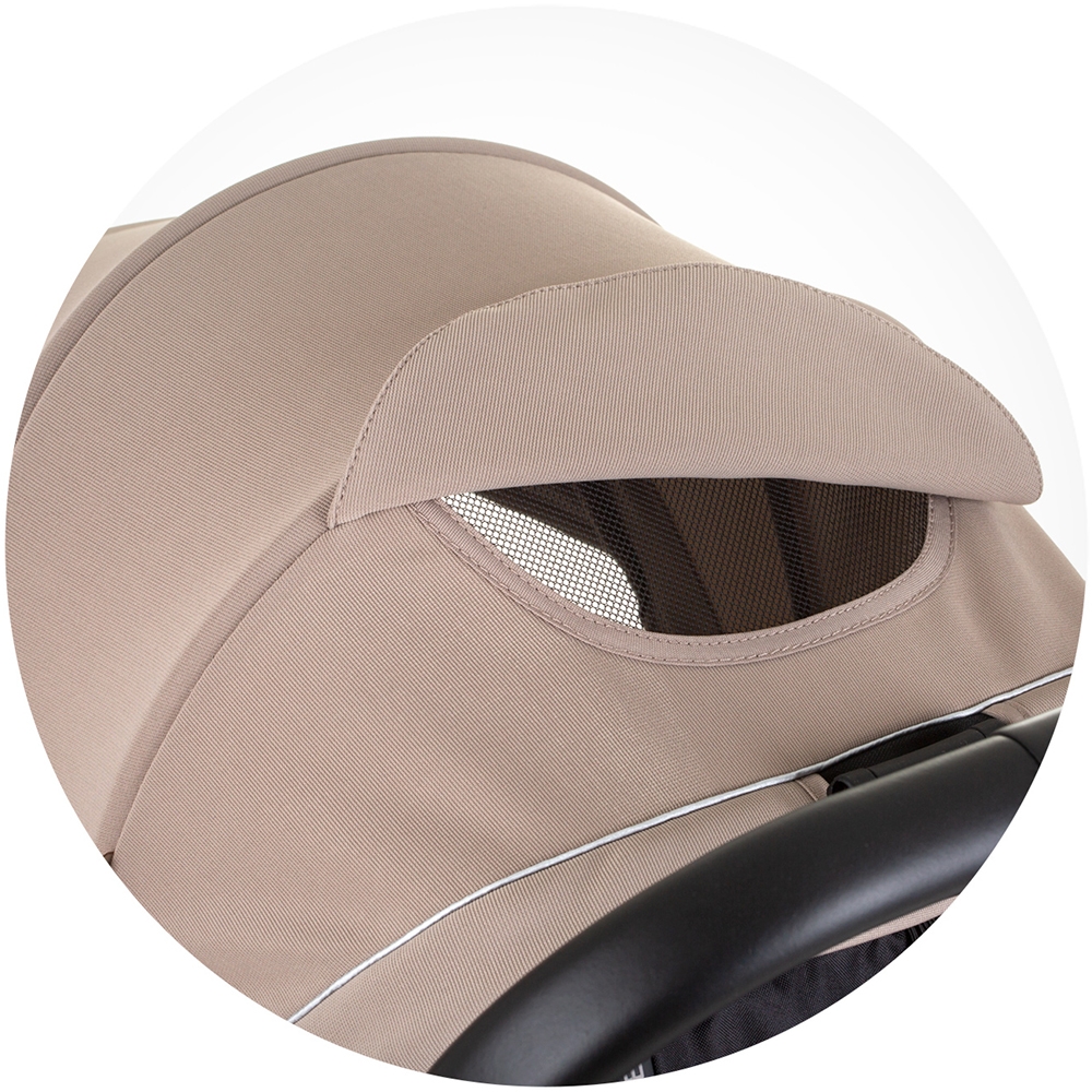 - Materialul de la copertina este impermeabil, dotata cu orificii de aerisire cu plasa