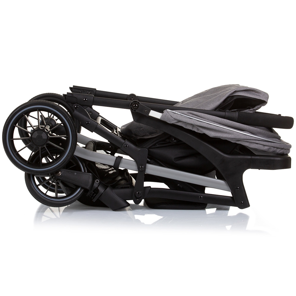 - Dupa pliere caruciorul poate fi transportat cu ajutorul manerului de transport