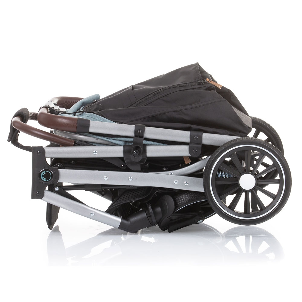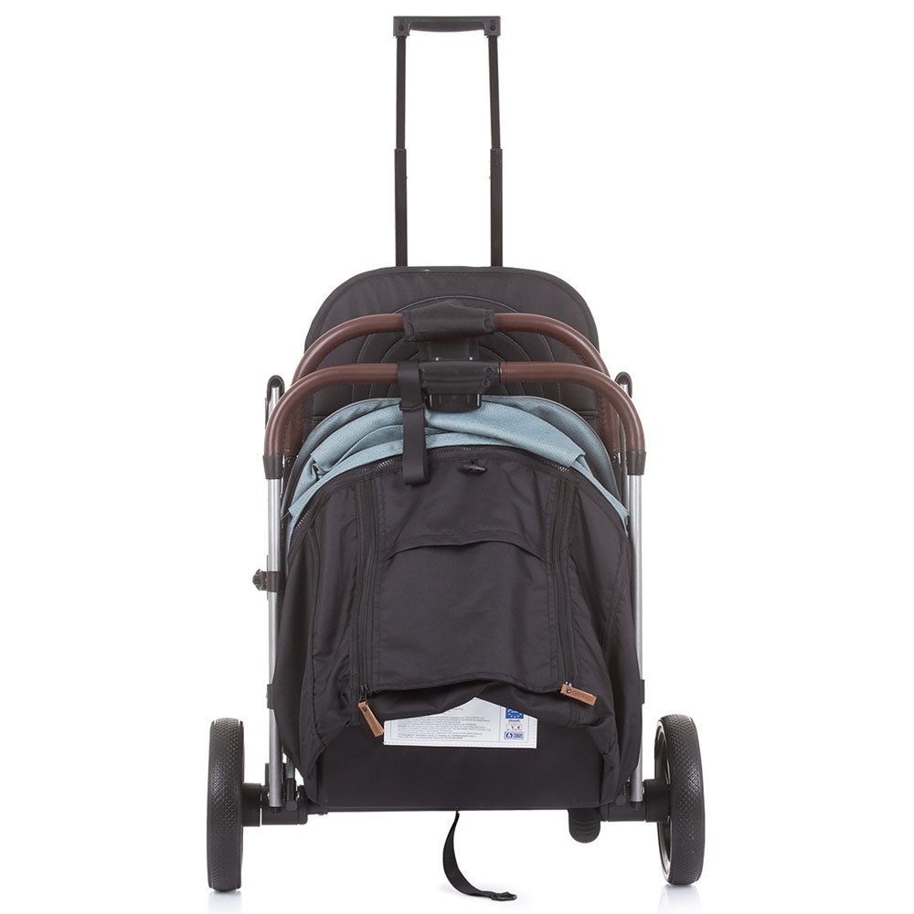 - Dupa pliere caruciorul poate fi transportat cu ajutorul manerului de transport