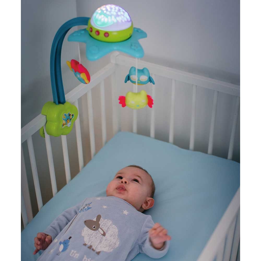 - Pe carusel atarna bufnite dragute care se invart deasupra capului bebelusului. Bufnitele ii vor capta atentia si il vor adormi incet