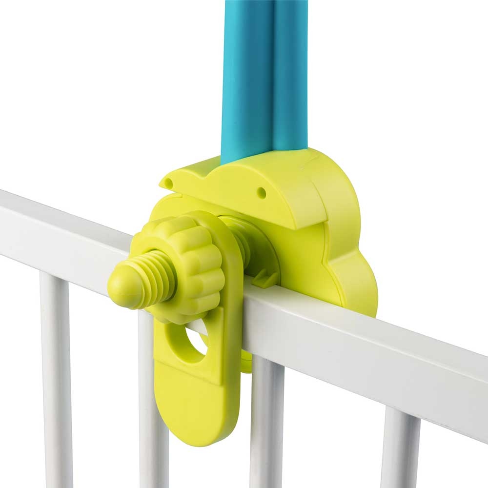 - Acest carusel se poate fixa in siguranta cu un surub pe marginea patutului si se poate regla in deplina masura la latimea patutului