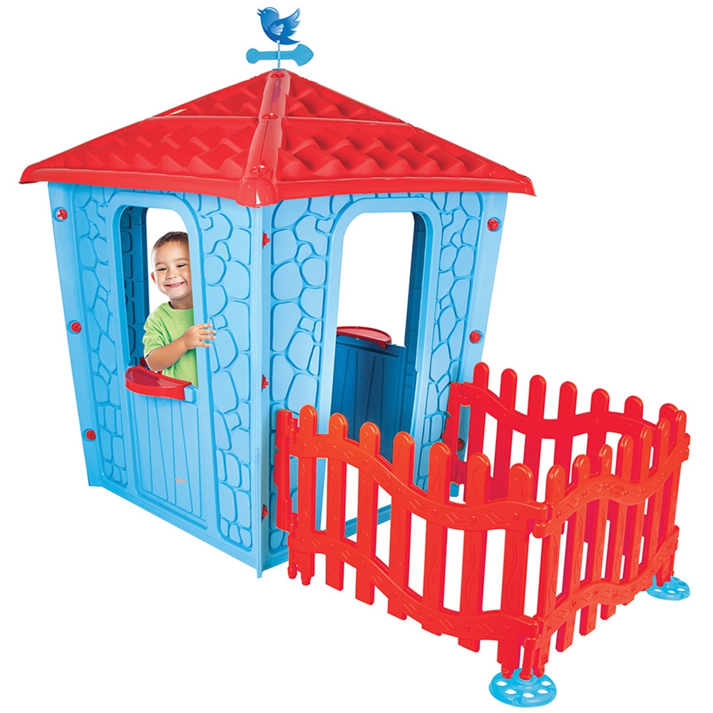 Casuta cu gard pentru copii Pilsan Stone House with Fence blue