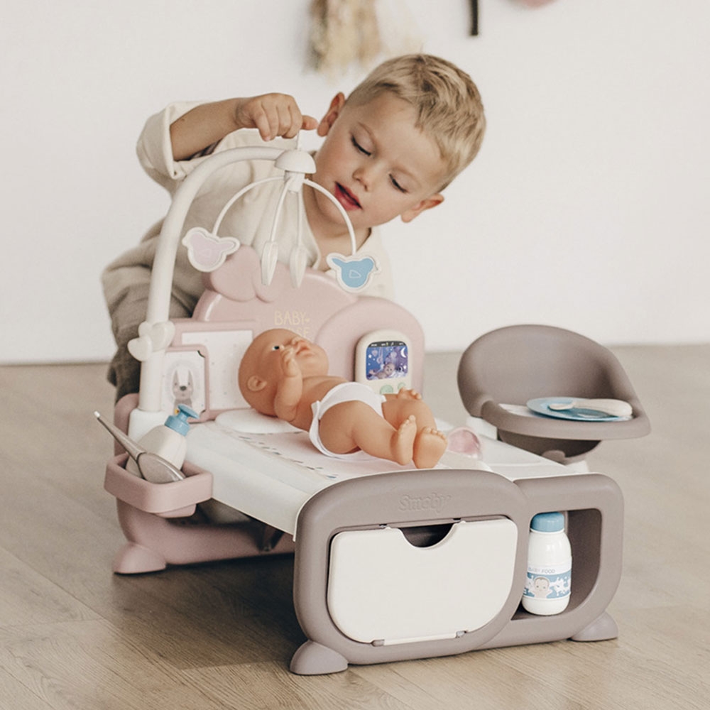 Centru de ingrijire pentru papusi Smoby Baby Nurse Cocoon Nursery maro cu papusa si accesorii