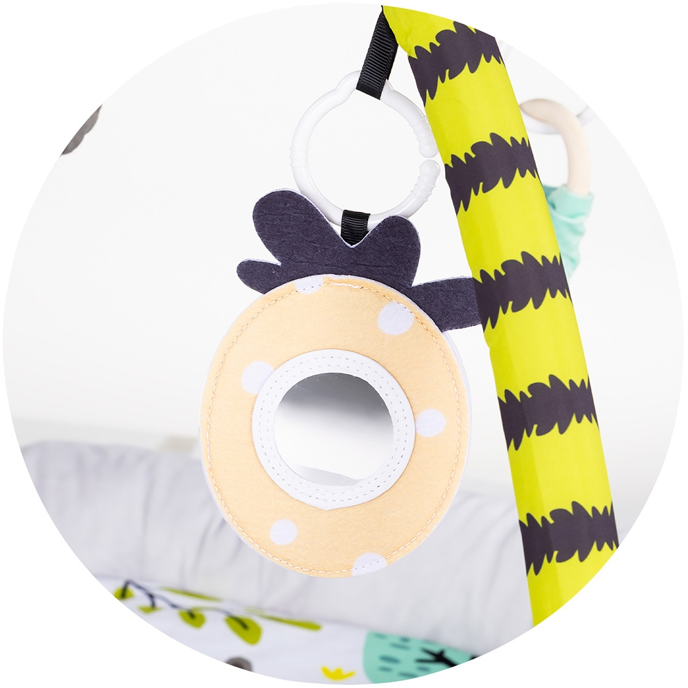 - Tesatura moale, texturile diferite si jucariile amuzante transforma acest covoras de joaca in cea mai buna sala de joaca pentru bebelus
