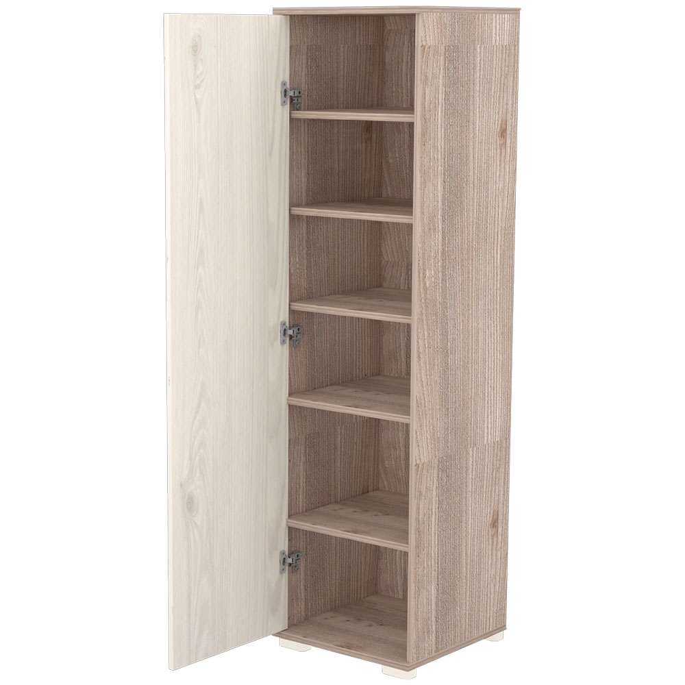 - Dulapul cu o singura usa ascunde numeroase rafturi si un spatiu pentru umerase