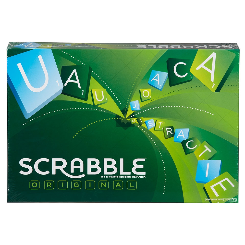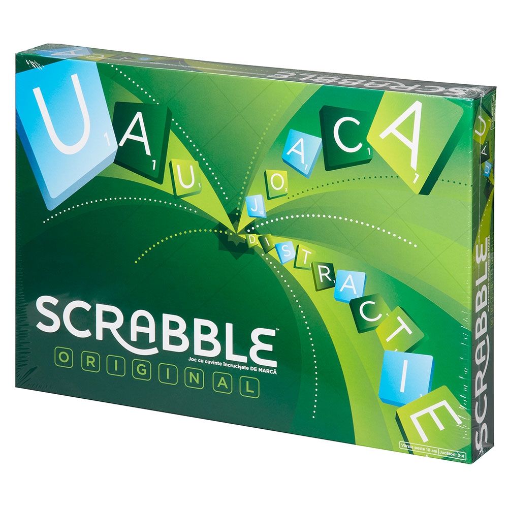 - Include: 1 tabla de joc Scrabble, 100 de jetoane cu litere, patru rafturi, o punga pentru jetoane si instructiuni