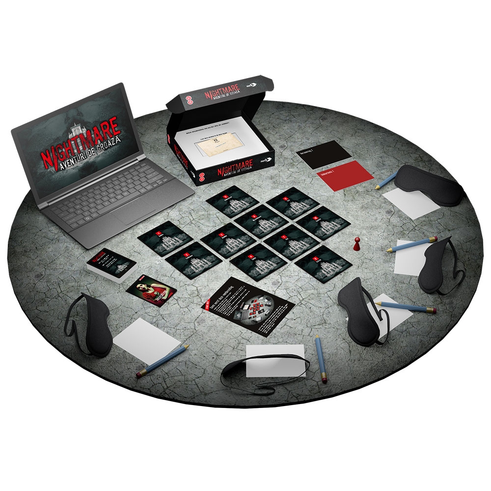 - Contine: instructiouni, 5 banderole de legat la ochi, 10 carti cu camere, 1 pion, 13 carti de rememorare, 11 carti cu evenimente, 58 carti cu povestea Nightmare, 1 plic ce contine 8 note