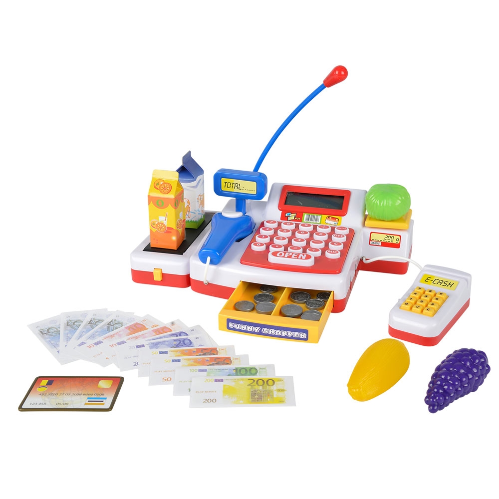 - Casa de marcat necesita 3 baterii 1,5 V LR6, nu sunt incluse