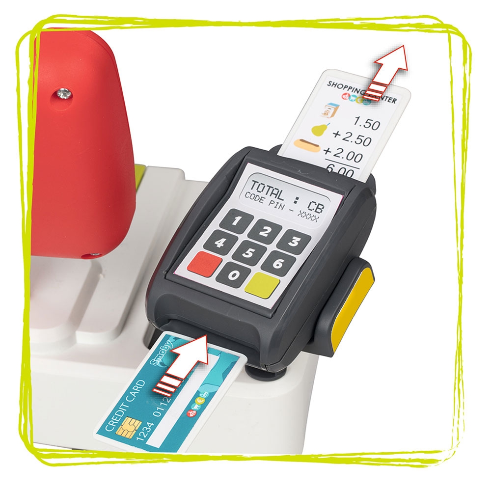 - Atractia fara indoiala a setului este casa de marcat electronica cu un ecran LCD si un sertar in care puteti stoca bani (imitatie de monede si bancnote) si un scaner cu functii de sunet si lumina