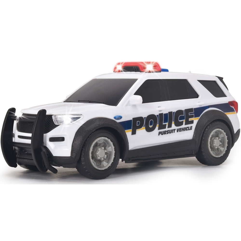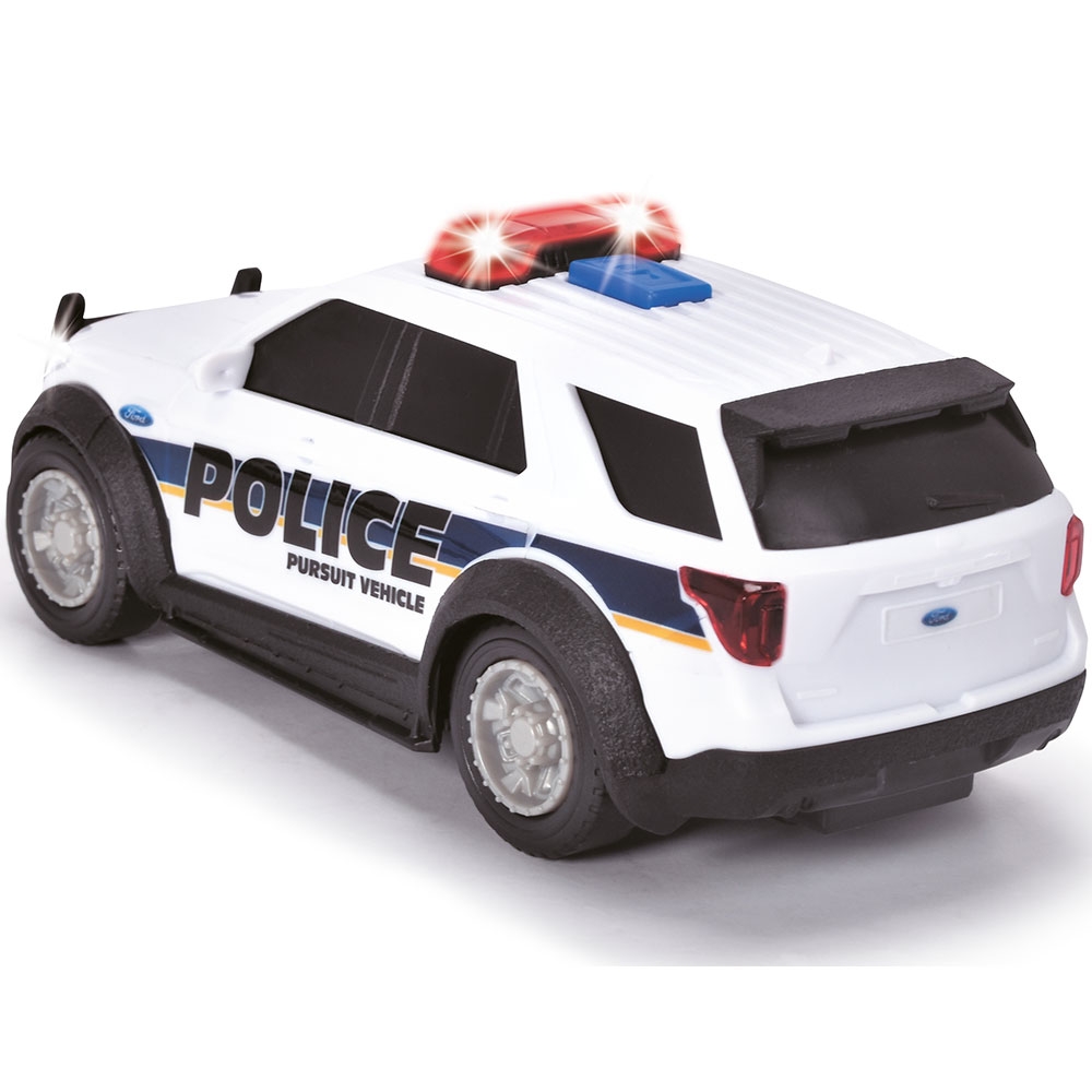 - Vehiculul de politie cu o lungime de 15 cm este modelat dupa originalul american de la Ford si este prevazut cu o serie de caracteristici
