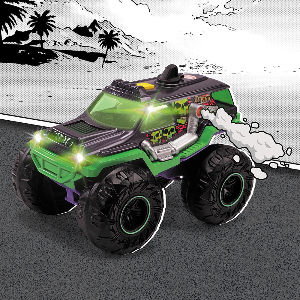 Detalii Masina Dickie Toys Rowdy Rocker 25 cm verde cu lumini si sunete