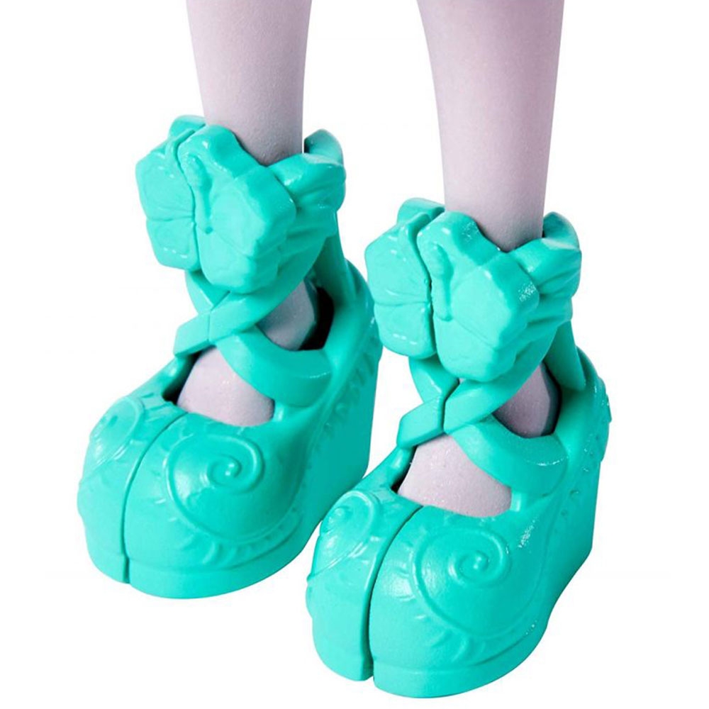 - Papusa poarta o tinuta si pantofi in culori stralucitoare, cu printuri florale