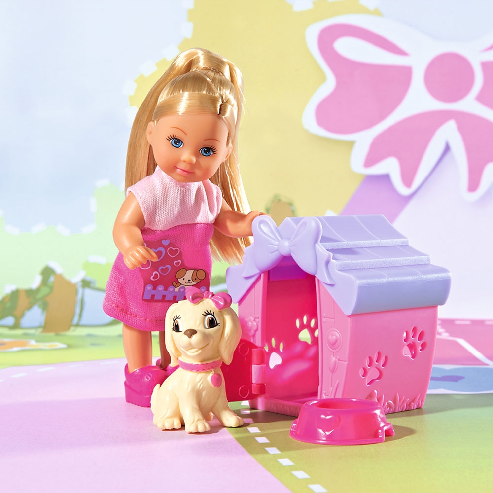 Papusa Simba Evi Love Dog House 12 cm cu figurina si accesorii