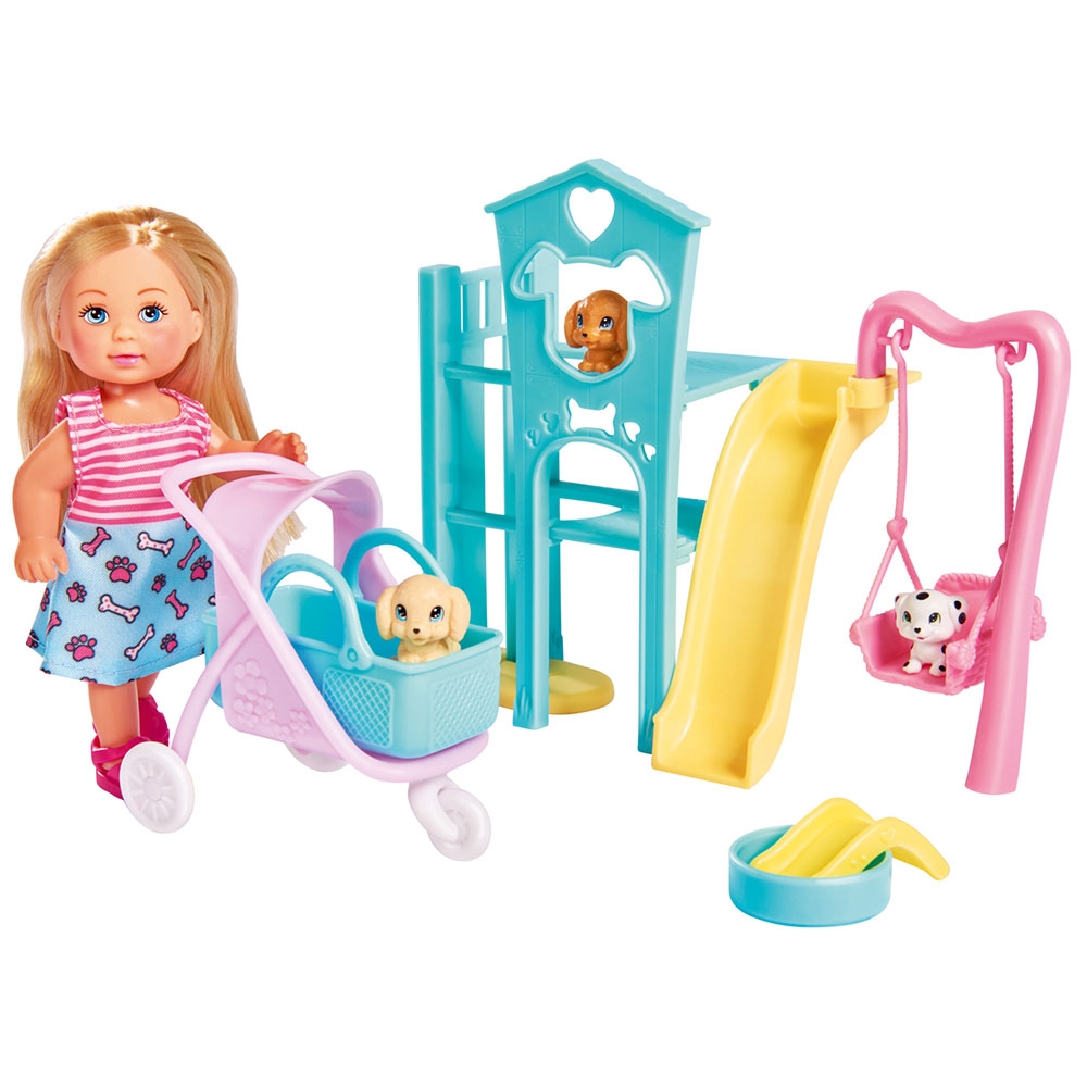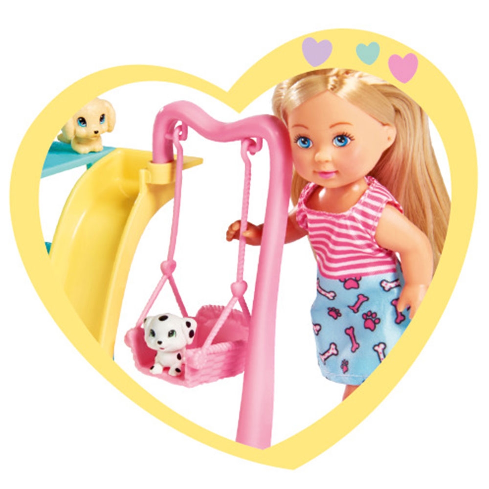 - Set compus din papusa Evi, 3 figurine, loc de joaca pentru catei si accesorii