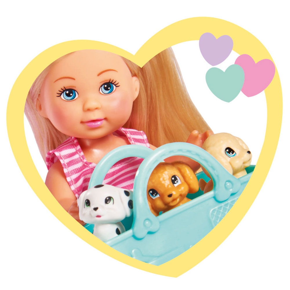 Papusa Simba Evi Love Puppy Fun 12 cm cu 3 figurine si accesorii