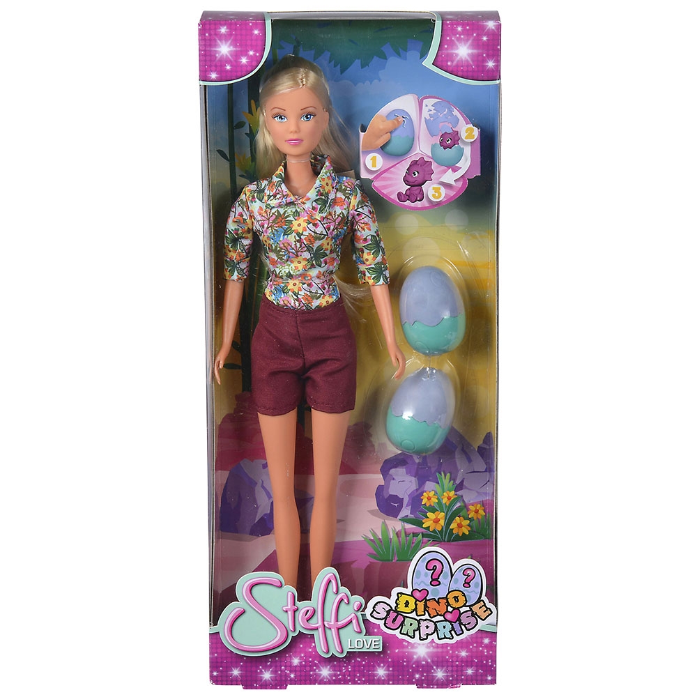 Papusa Simba Steffi Love Dino Surprise 29 cm cu 2 figurine