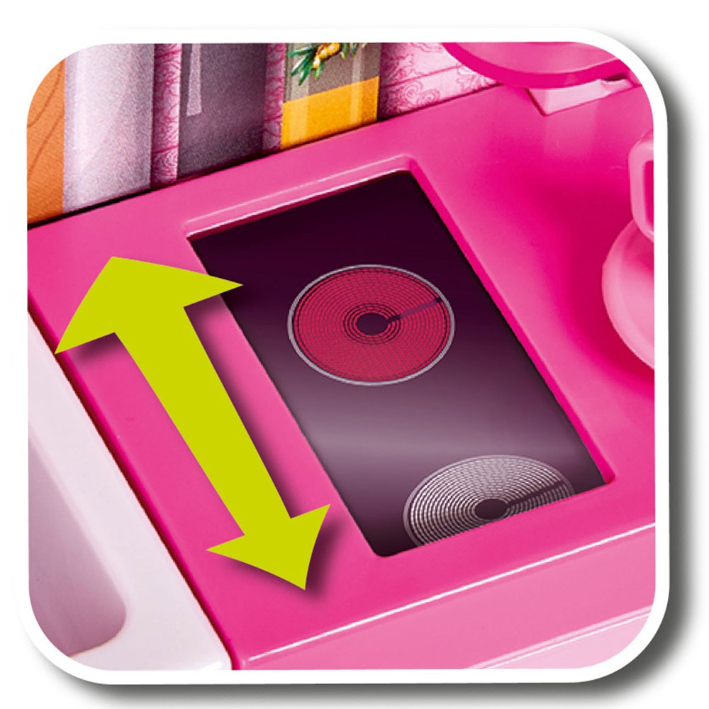 - Setul include accesorii: vase, cuburi de gheata, ustensile de bucatarie, mancare de jucarie