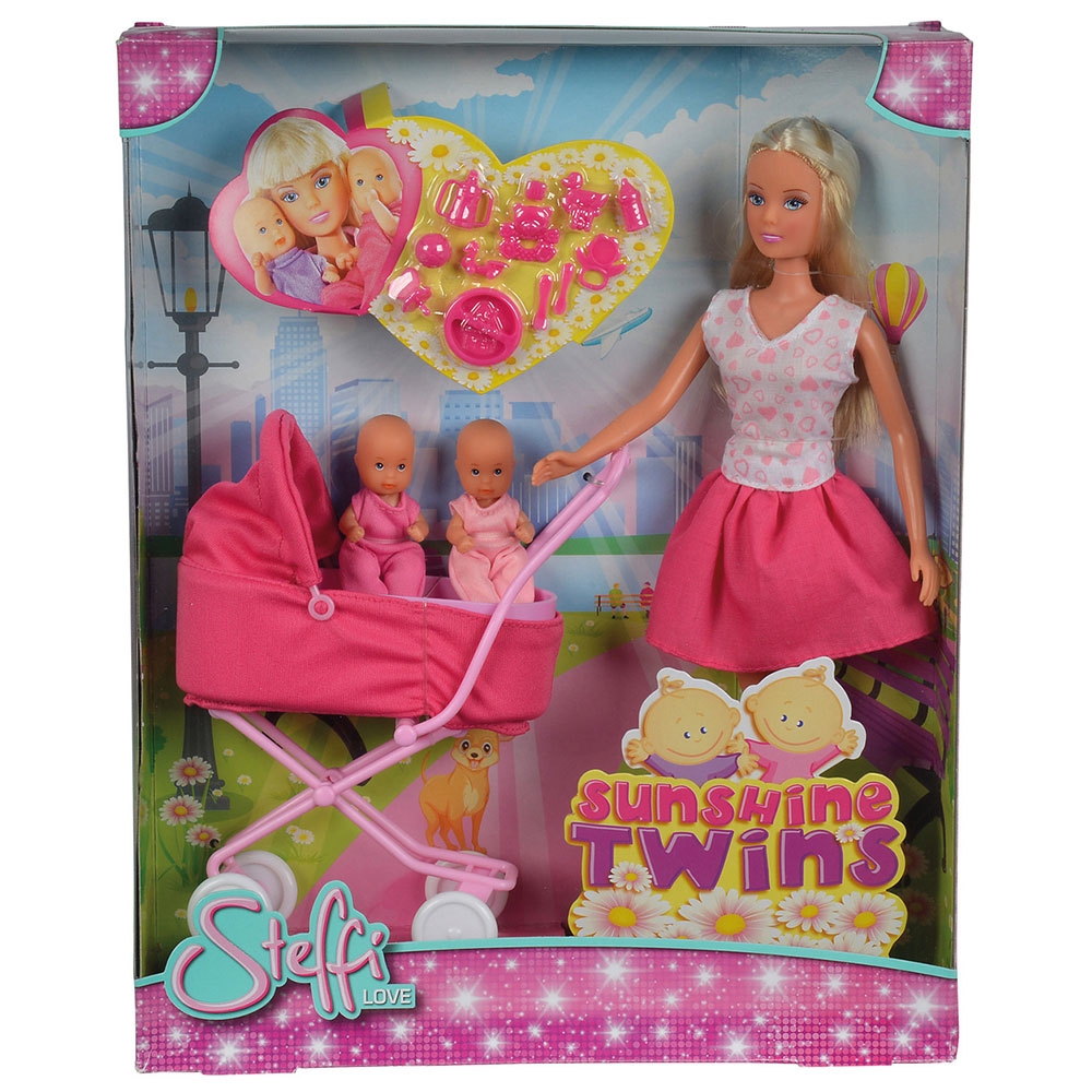 Papusa Simba Steffi Love Sunshine Twins 29 cm roz cu carucior si accesorii