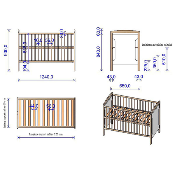 - Este realizat din lemn masiv si semifabricate din lemn, beneficiaza de finisaje de exceptie, partile patutului sunt tratate cu vopsele si lacuri ecologice pe baza de apa conform normelor si reglementarilor Europene, somiera nu este tratata cu vopsea, nu reprezinta nici un pericol pentru sanatatea celui mic.