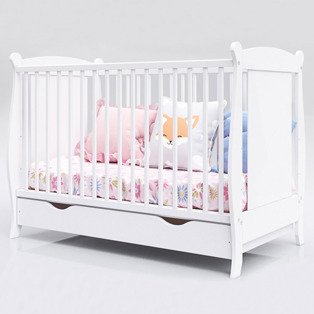 Patut copii din lemn Hubners Laura 120x60 alb cu sertar