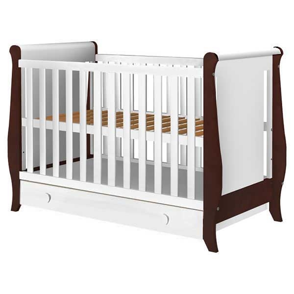 Patut copii din lemn Hubners Mira 120x60 cm alb-venghe cu sertar