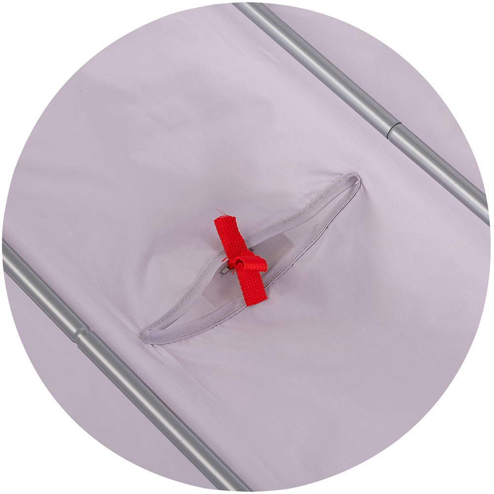 - Patutul este echipat cu un mecanism usor de pliat cu o singura mana. Dupa ce trageti in sus manerul din centrul inferior al patutului, toate cele 4 laturi se pliaza impreuna, ceea ce face ca plierea patutului sa fie foarte usoara pentru transport sau depozitare