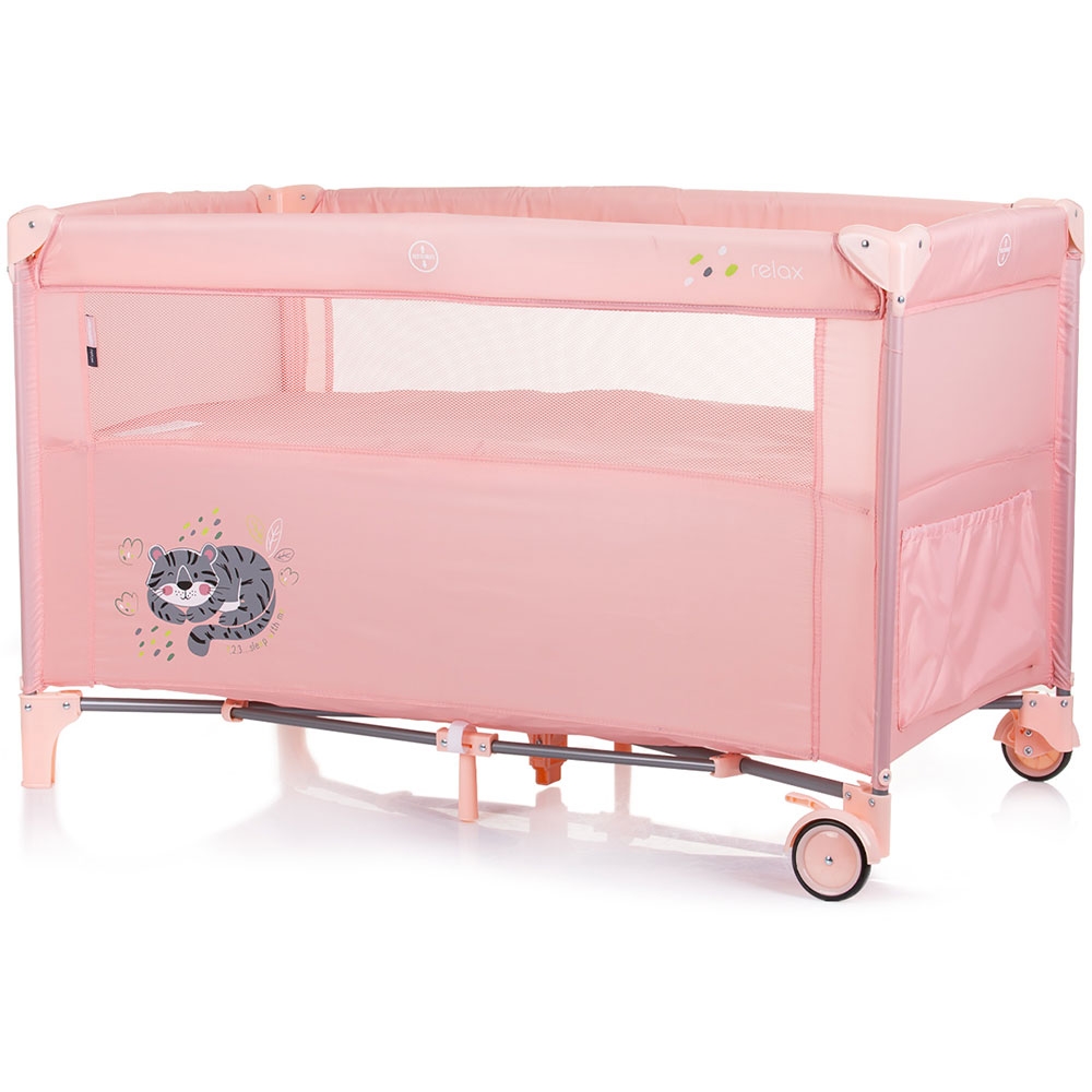 Patut pliabil Chipolino Relax flamingo cu laterala culisanta