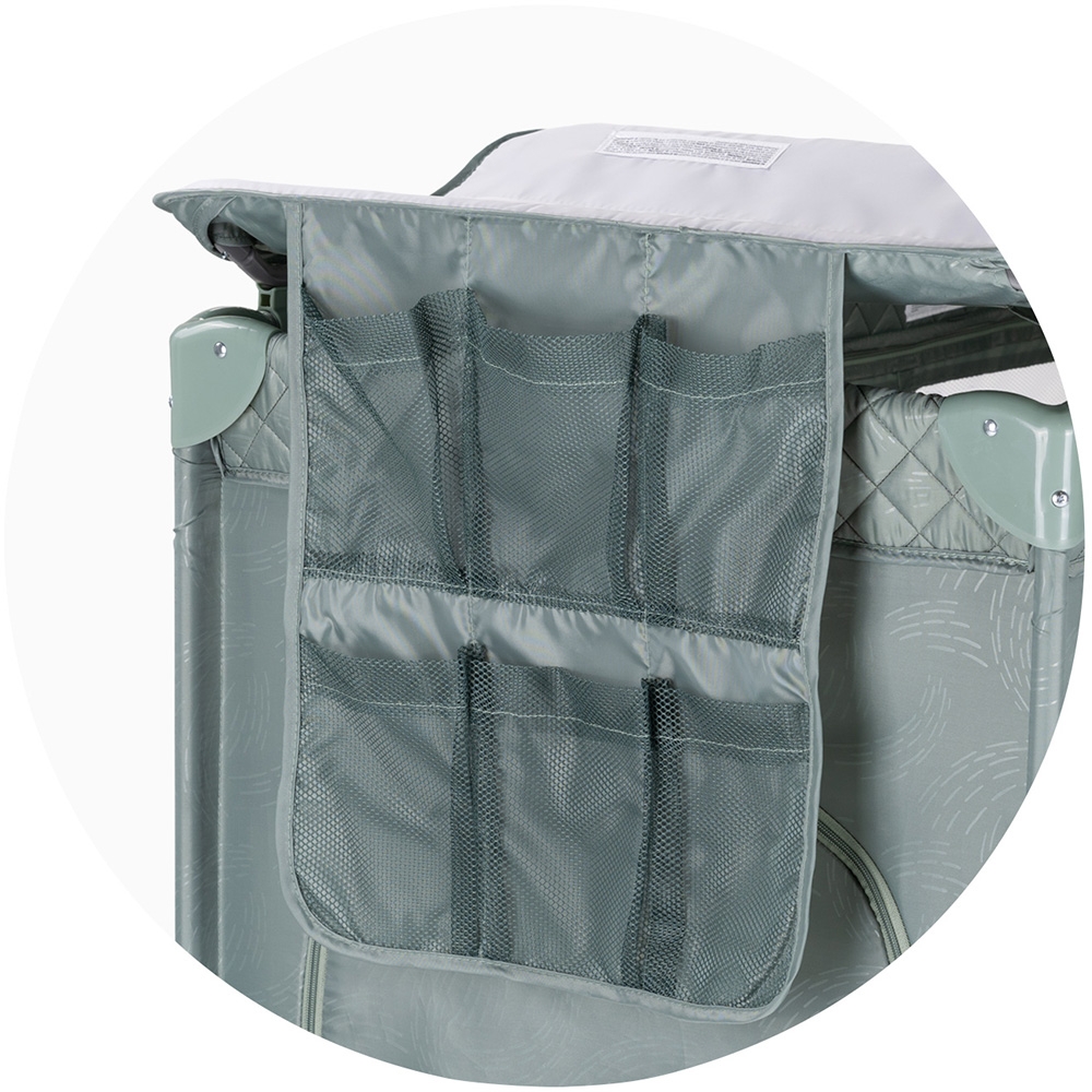- Buzunar pentru accesorii pe una din lateralele scurte ale patutului