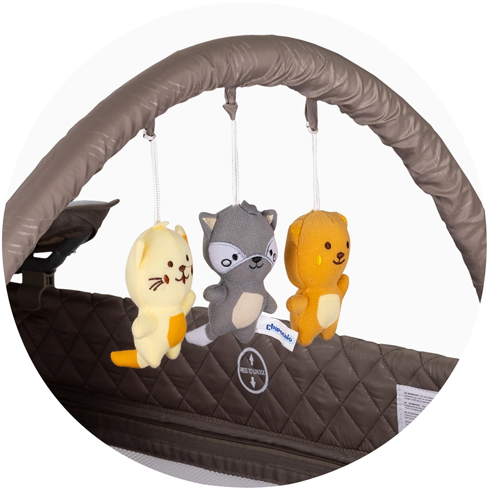 - Bara de jucarii cu trei jucarii de plus pentru a distra copilul