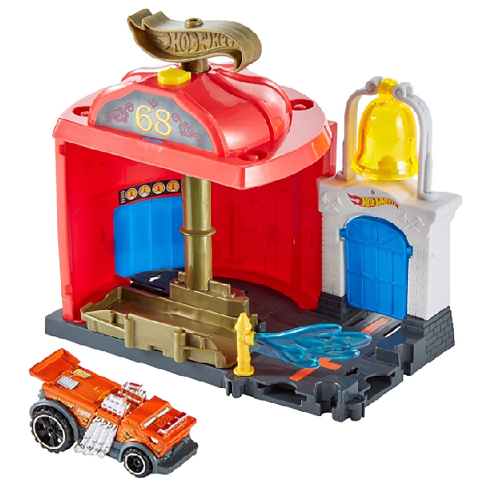 Pista de masini Hot Wheels by Mattel City Downtown Fire Station Spinout cu masinuta