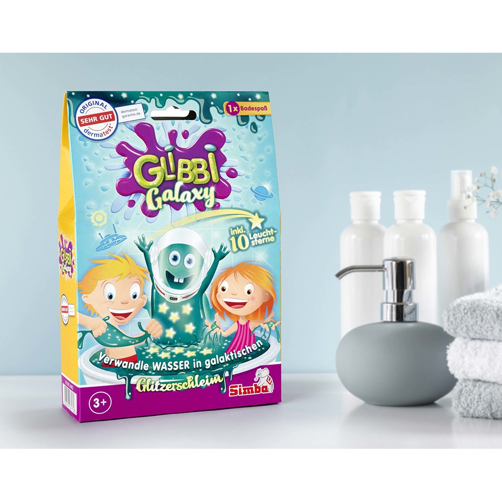 - Glibbi Galaxy contine un pachet de pulbere, care transforma apa in gelatina si 10 stelute fosforescente