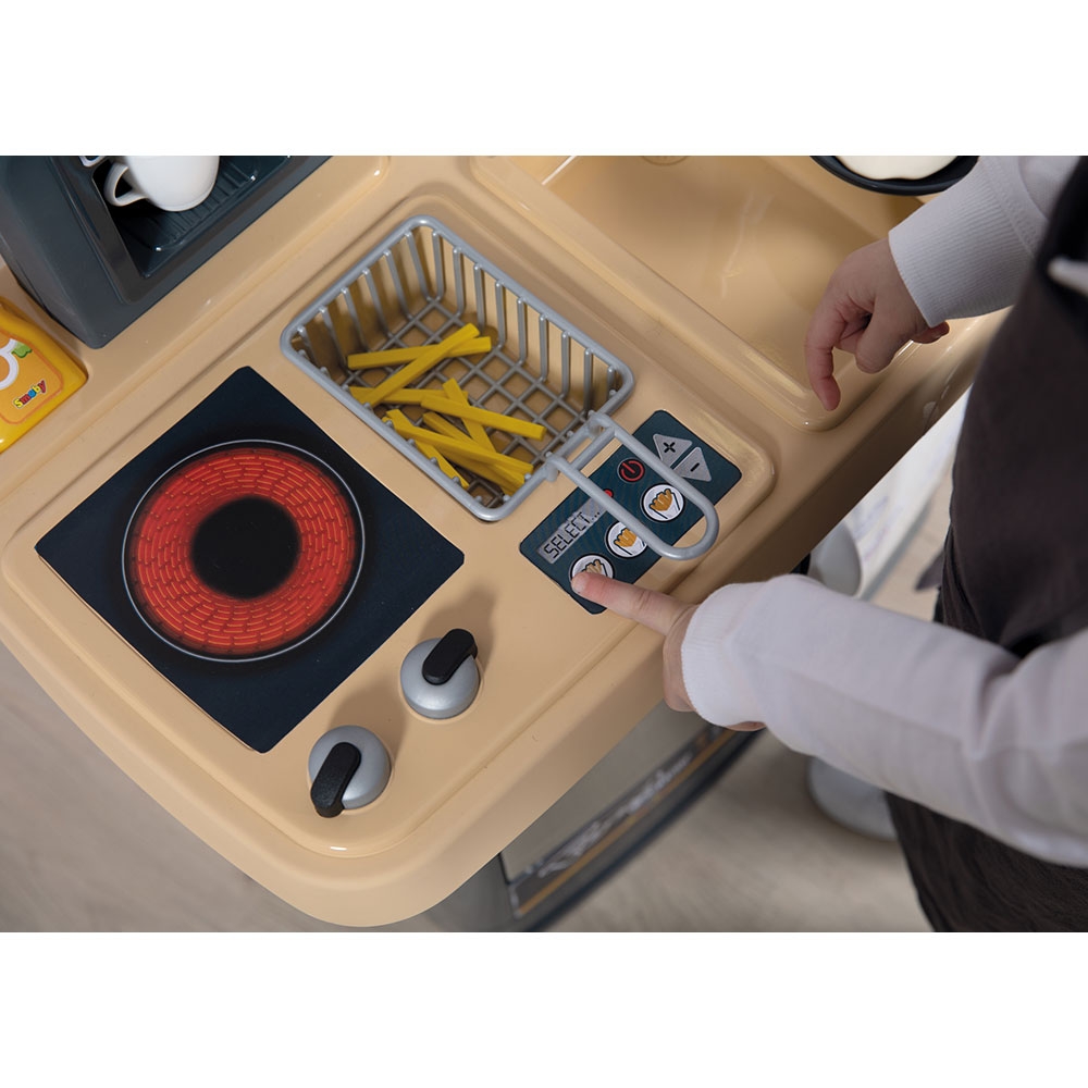 - Zona de bucatarie pentru pregatirea comenzilor dispune de: 1 farfurie, 1 friteuza, aparat de cafea, cuptor, frigider, chiuveta, casa de marcat; 29 de accesorii: 1 tigaie, 1 farfurie, 1 burger, chipsuri, 1 terminal de plata, 1 cana, 1 tava, ketchup, maioneza, ustensile de gratar, 1 clatita, 1 cos cu cartofi prajiti si tacamuri