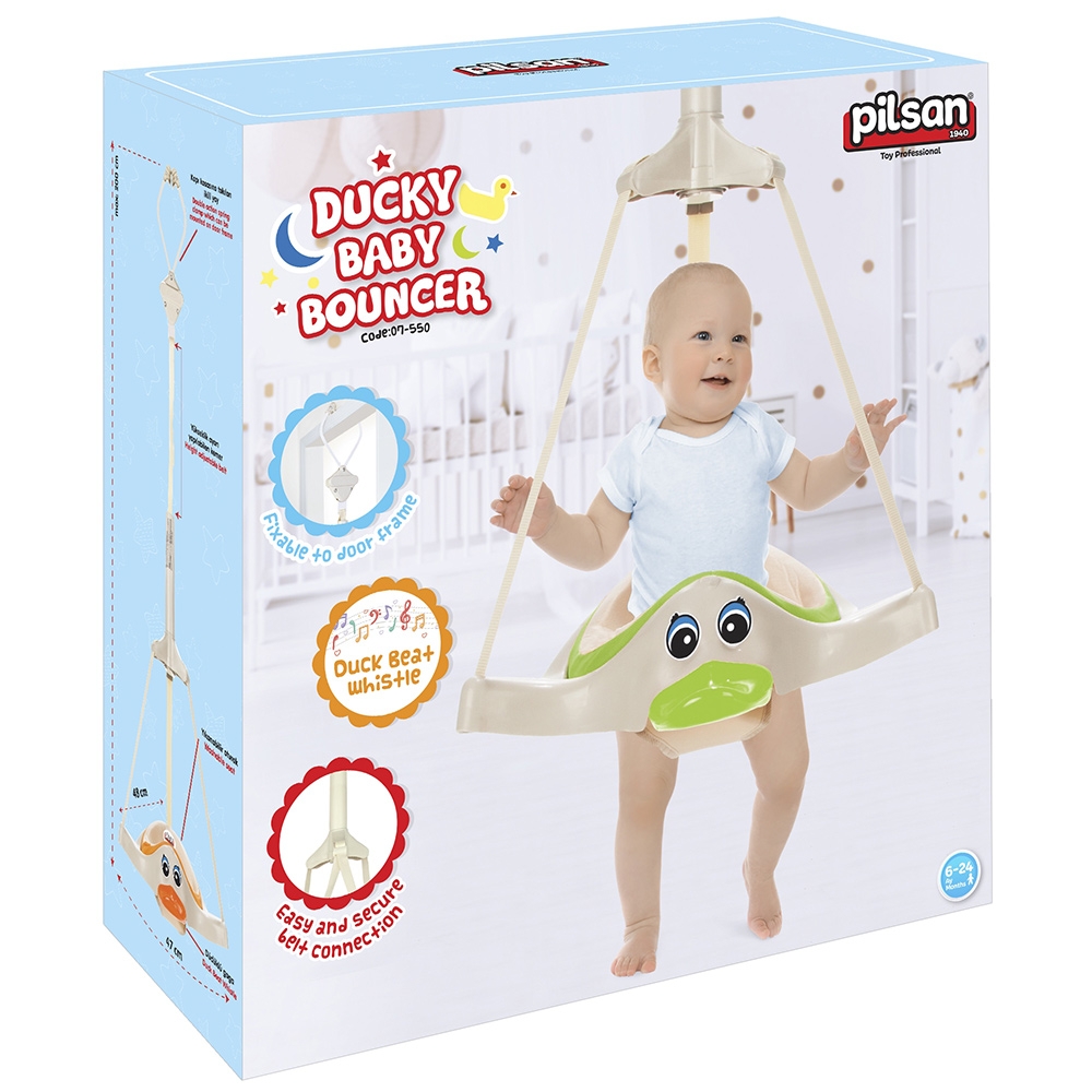 - Saritorul pentru bebelusi, avand forma unei ratuste, reprezinta o jucarie distractiva si utila pentru cel mic