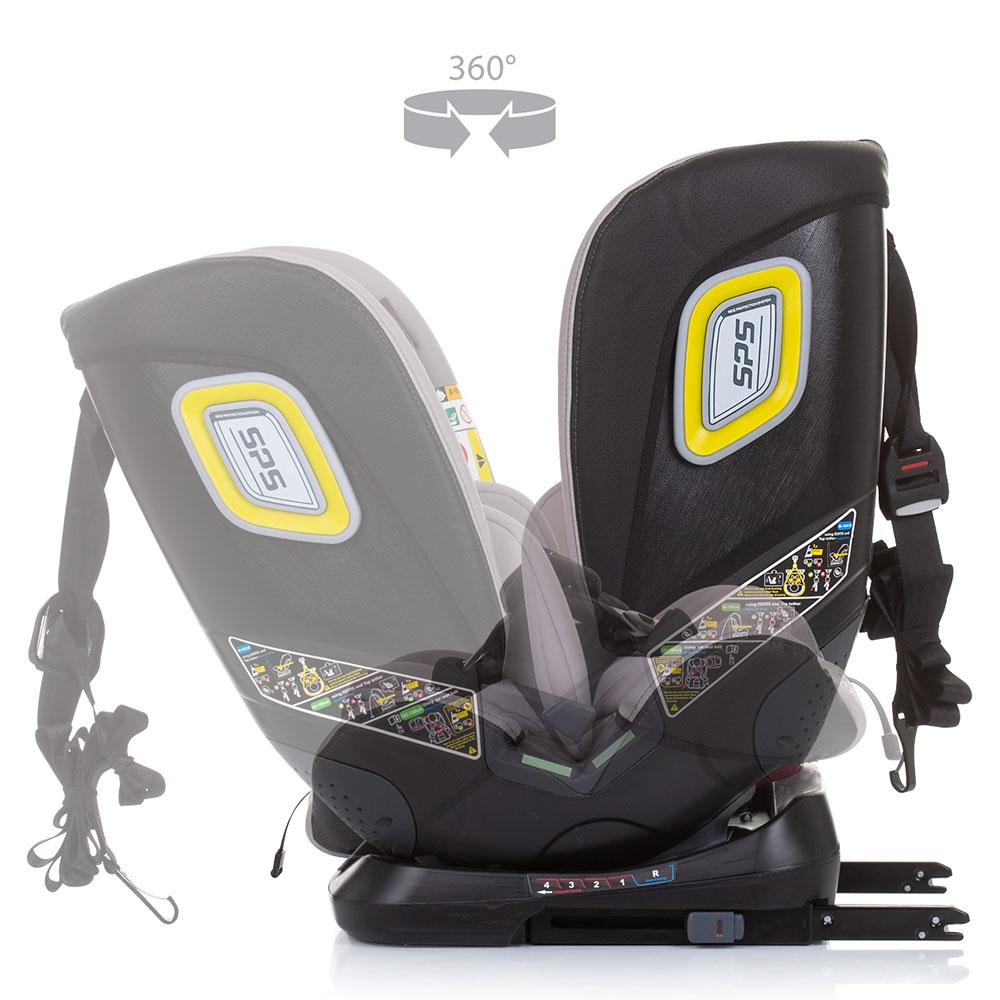 - Scaunul auto se poate roti la 360 de grade pe baza de plastic