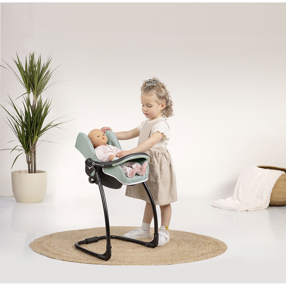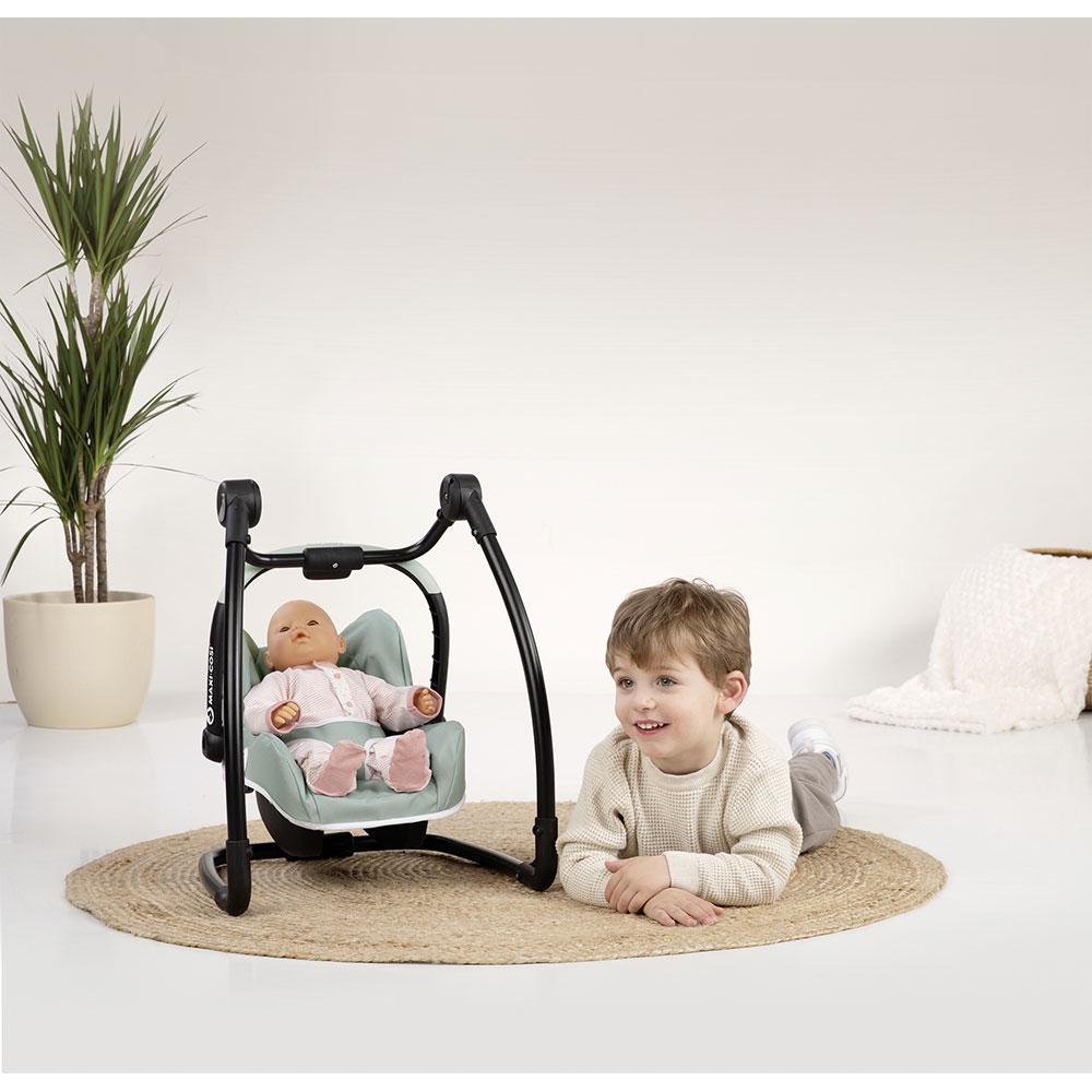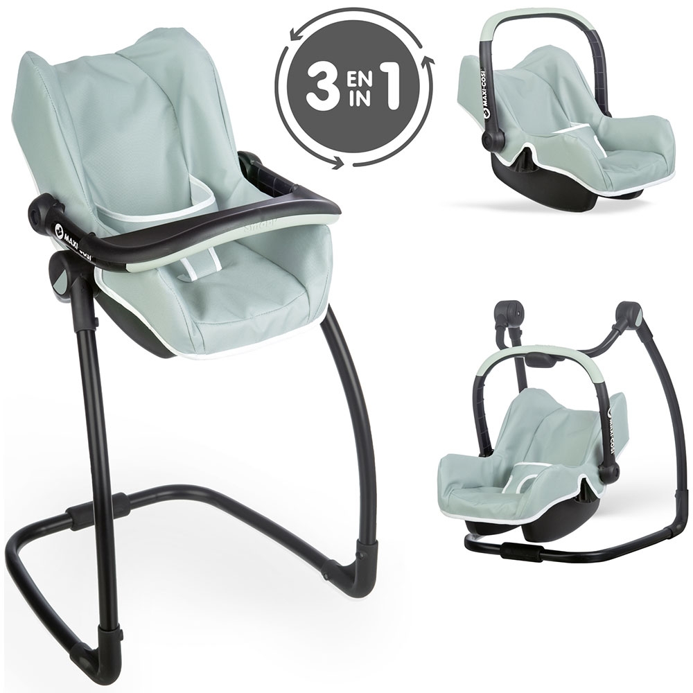 - Scaunul de masa pentru papusi Smoby Maxi Cosy Quinny 3 in 1 cu functia de scaun de masa, leagan sau scaun auto, ofera tot ce are nevoie o tanara mamica pentru a avea grija de papusa sa