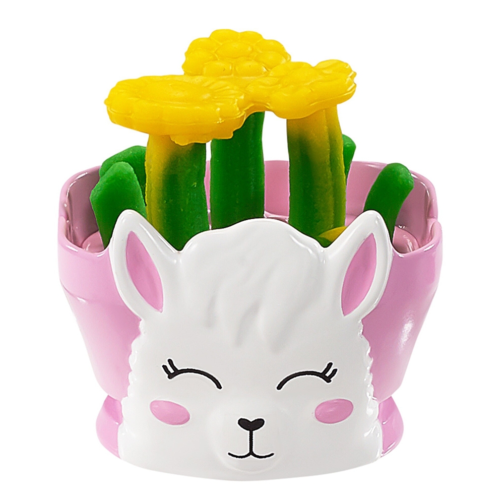 - Pentru a crea flori, puneti aluatul in mijlocul statiei de lucru, apoi puneti vaza deasupra suprafetei, impingeti maneta laterala si priviti cum florile apar in vaza