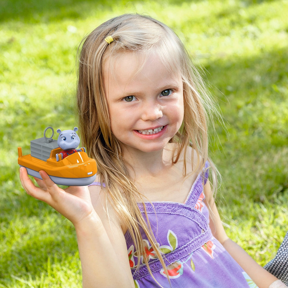 - Impreuna cu cei doi prieteni, copiii vor invata despre apa prin joc, descoperind cum se creeaza curentii, ce face ca apa sa-si schimbe directia si cum plutesc barcile. Setul ii va invata, de asemenea, cum sa coordoneze procese simple precum incarcarea si descarcarea containerelor si ridicarea si coborarea manuala a bratului macaralei