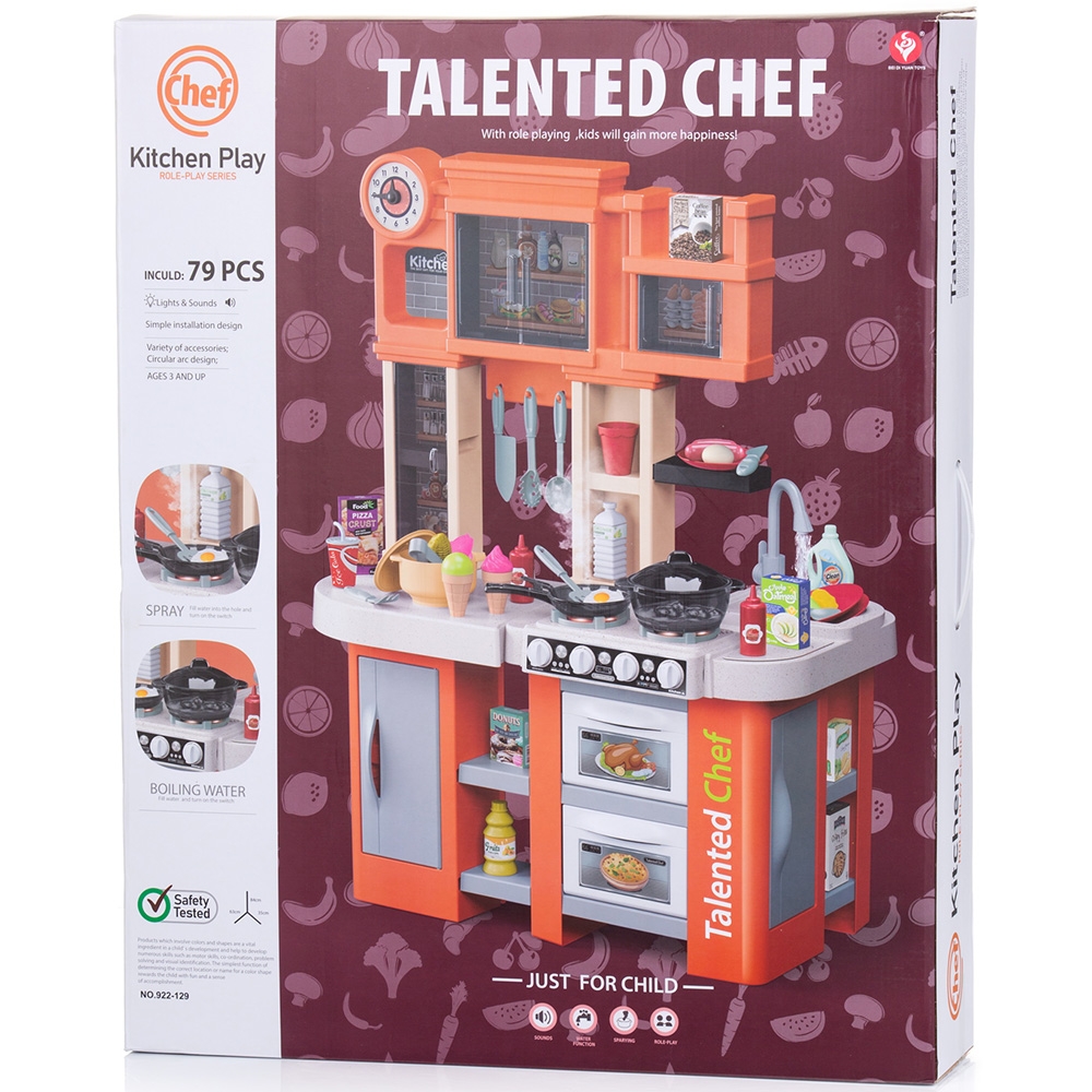 Set jucarie Chipolino Kitchen 84 cm cu sistem de curgere apa, lumini, sunete si 79 accesorii