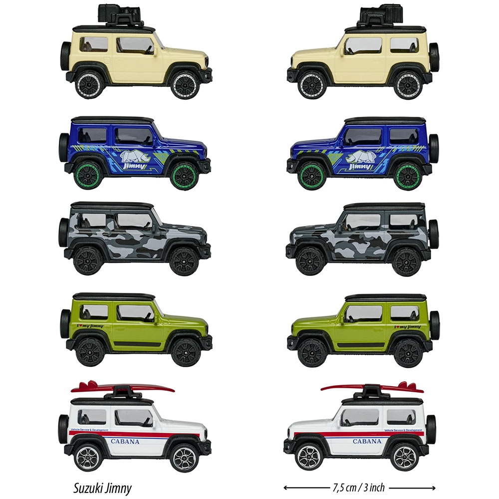 Detalii Set Majorette Suzuki Jimny cu 5 masinute din metal