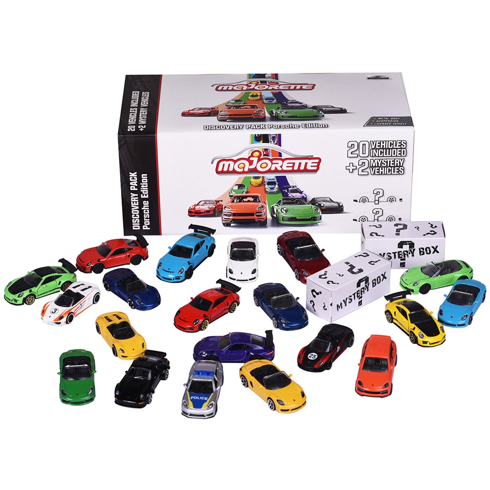 - Acest set este cadoul perfect pentru fanii si colectionarii Porsche. Pachetul Porsche Discovery contine 20 de masini de jucarie din gamele Street, Premium, Racing, Vintage si Police si 2 masinute surpriza, concepute cu mare atentie la detalii