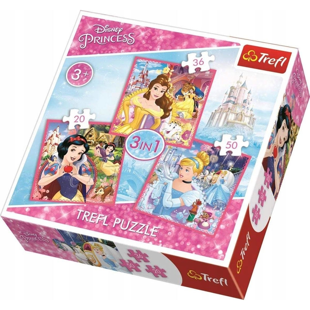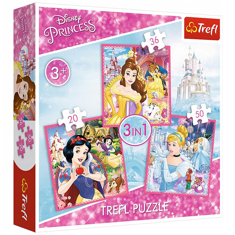 Set puzzle 3 in 1 Trefl Disney Princess, Lumea fermecata a printeselor, 1x20 piese, 1x36 piese, 1x50 piese
