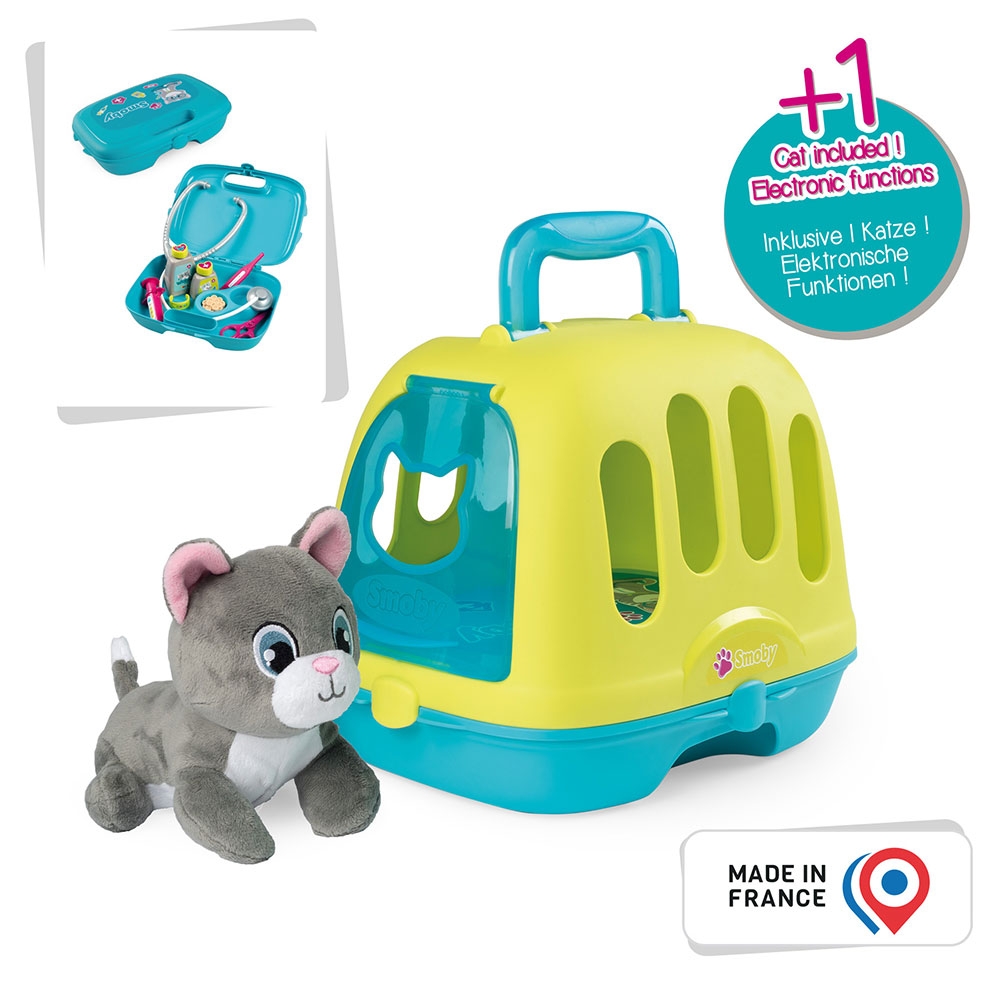 Set Smoby Veterinary Case, trusa veterinar cu pisica, cusca de transport si accesorii