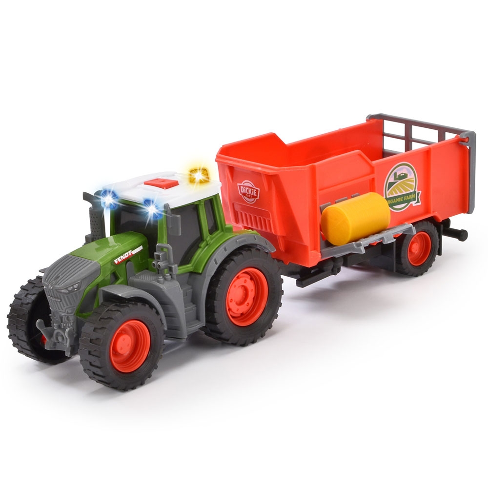 - Tractor Dickie cu licenta Fendt, cu remorca ce se poate bascula, sunete si lumini