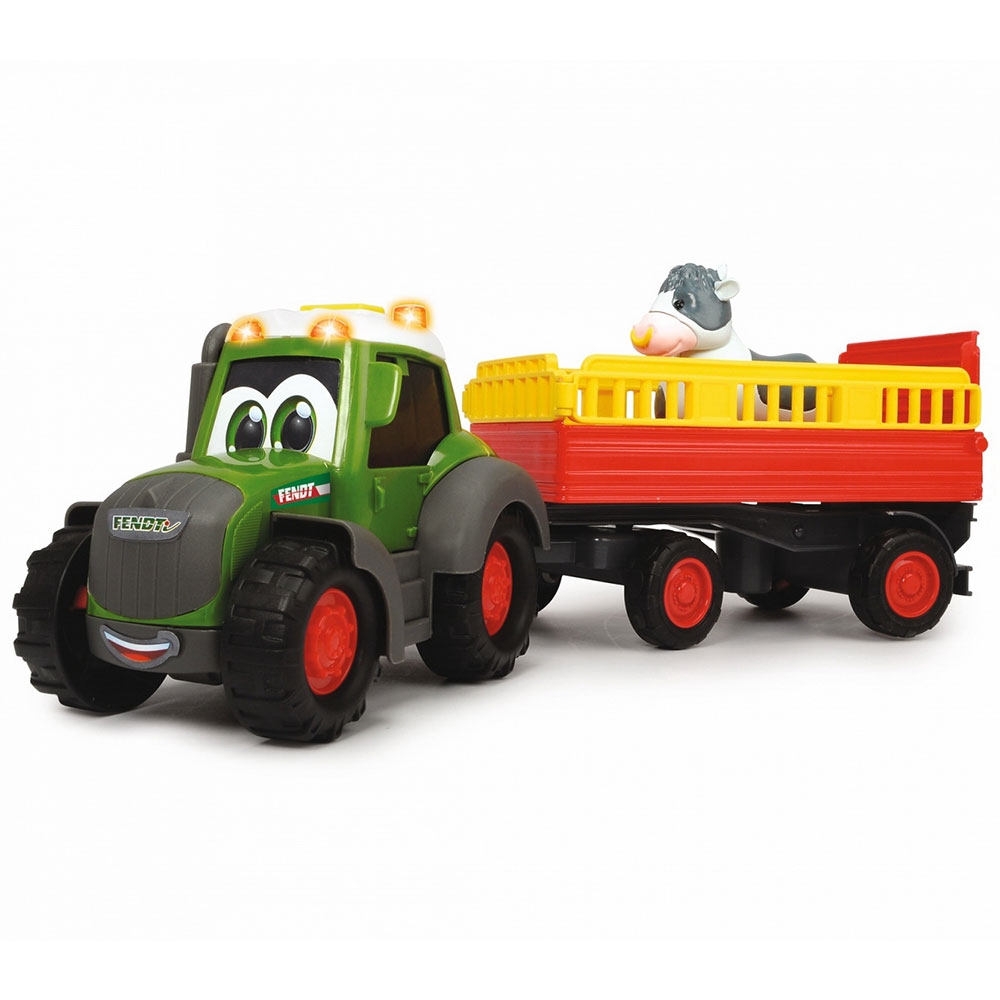 Tractor Dickie Toys Happy Fendt Animal Trailer cu remorca si figurina vaca